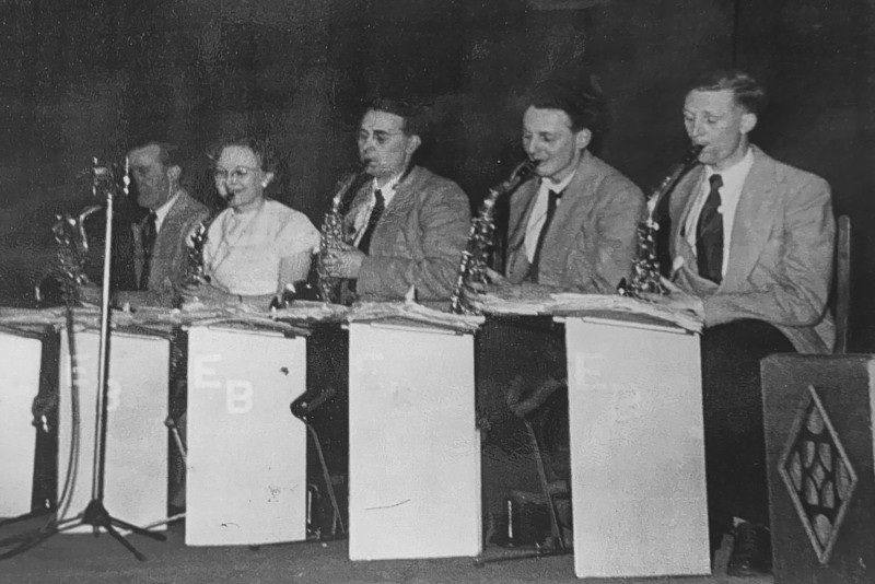 Freda and Trevor met as bandmates in The Eddie Brian swing band. When it came to playing in bands, Freda followed in her grandfather’s and father’s footsteps, with Robert being involved in dozens of local groups and father Fred running bands such as a Bolton banjo, mandolin and guitar ensemble.