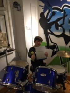 Huge congratulations go to Alex’s 10 year old student Cameron, who achieved a distinction in his GRADE 8 drum exam – fantastic Cameron well done!!